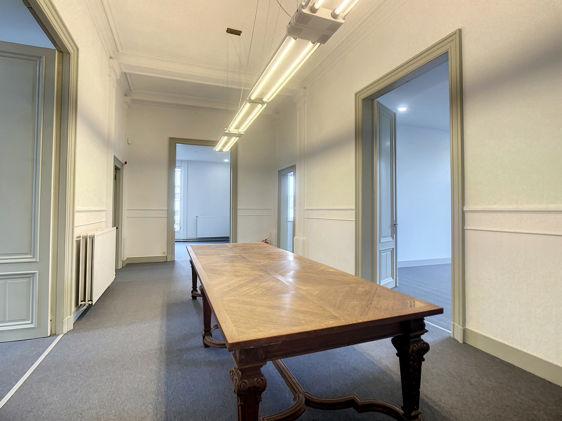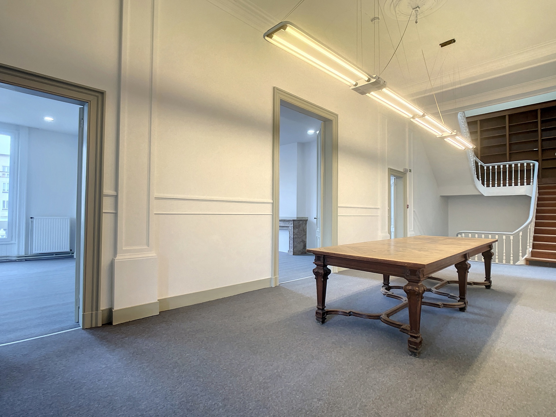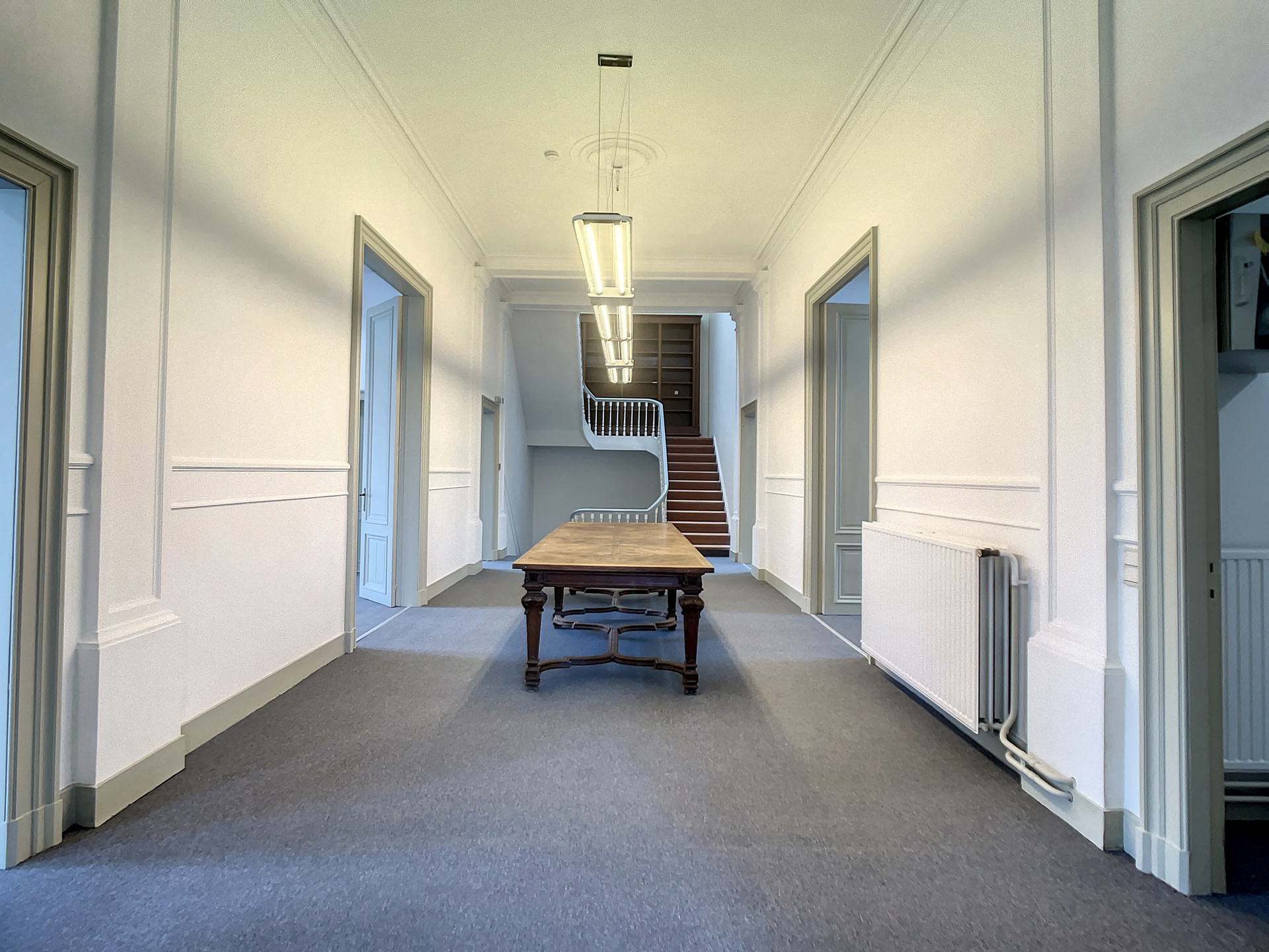 Het gebouw is ingedeeld in verschillende impressionante ruimtes met centraal een open werkruimte.
